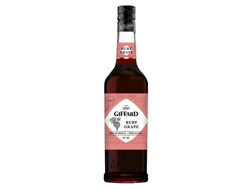 Giffard Ruby Grape Alcohol Free – nealkoholická koktejlová báze z koncentrovaného červeného vína, zbaveného alkoholu. Nabízí bohatou chuť tmavého ovoce, karamelové vanilky a švestek s jemně bylinnou hořkostí. Ideální pro nealko Americano, Vermouth Sour nebo Boulevardier.